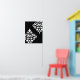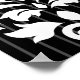 Obra de damasco de hoja y pergamino con diseño de detalles en blanco sobre rayas grises y fondo negro en una impresión de arte de estilo moderno.