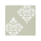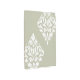 El diseño del damasco de hoja y pergamino se repite con un detalle blanco sobre un fondo verde sabio.