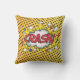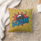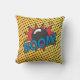 El cómic del arte pop de la diversión inspiró la almohada con el fondo amarillo y los puntos negros. ¡Un lado es una bomba que dice que el auge y el otro lado es una explosión de nube con el desplome de la palabra! Ilustracion dibujado mano de McBooboo