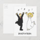 Una novia y un novio de dibujos animados bailando, con la palabra 'INVITACIÓN' escrita debajo.