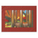 Después del viento, una sola hoja caída yace donde cayó sobre una ciénaga silenciosa. En el suelo bajo la hierba aún verde está cubierta de hojas amarillas y rojas. En el fondo, un huerto de otoño de color rojo y dorado refleja sus colores en las barras plateadas del timbre.