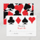 Perfecto para un boda de Las Vegas en una pequeña capilla de la franja o el salón de baile del más reciente super casino, esta suite de invitados a la boda presenta un motivo clásico de trajes de cartas en negro, blanco y rojo. Para un día perfecto, todo lo que necesitas es amor y uno o dos testigos. Diseño de Ashley Peterson de 2birdstone � 2013