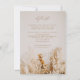 Una tarjeta de detalles de boda con letra floral boho que incluye flores secas y texto editable con detalles de la letra. Haga clic en el botón de edición para personalizar este diseño.