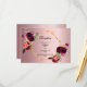 Una elegante tarjeta de detalles de la recepción de bodas. Un marco falso de forma geométrica de oro con rosas bohemias, de estilo boho acuático en burdeos y rosa. Un rosa turbio de aspecto metálico falso. Plantillas para los detalles de la recepción de la boda, texto negro. Atrás: rosa polvoriento falso fondo metálico.
