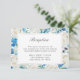 Tarjeta de detalles de recepción de la recepción de la boda azul con borde floral.