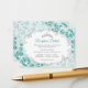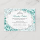 Tarjetas de detalles de recepción de Quinceañera de plata turquesa. Características, fuente de escritura, mariposas de plata, rosas de acuarela y tiara. Perfecto para una celebración de glamour de princesa elegante. Personalice con sus propios detalles.