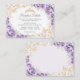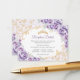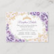 Tarjetas de detalle de recepción de Quinceañera en purpura lila y dorado. Características, fuente de escritura, mariposas doradas, rosas acuarela y tiara. Perfecto para una celebración glamorosa de princesa elegante. Personalice con sus propios detalles.