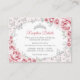 Tarjetas de detalles de recepción de Quinceañera con plata rosa. Características, fuente script, mariposas plateadas, rosas de acuarela y tiara. Perfecto para una celebración de glamour de princesa elegante. Personalice con sus propios detalles.