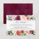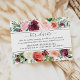 Comparte la información de la recepción de una manera hermosa y coordinada con esta tarjeta de inclusión de boda que presenta la escritura “vamos a celebrar” y flores acuarelas exuberantes en borgoña, rosa y vegetación. El diseño limpio mantiene el horario y el lugar fáciles de leer. Perfecto como inserto de recepción para un conjunto de boda floral de otoño.