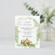 Vegetación de color agua pintada a mano y fresas tarjetas de detalles de los invitados con fondo de color verde salado de agua.