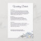 Detalles del Boda del menú combinado Dusty Blue Fl