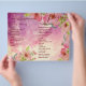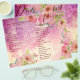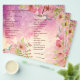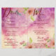 Estilo fresco y juvenil. Programa de boda floral lindo y elegante, e información de detalles de la boda. Rosas silvestres de acuarela rosadas hechas a mano sobre fondo de acuarela rosa. Editar el fondo y filtro de foto de flor.