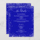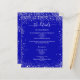 Un moderno y elegante programa/detalles/cronología de bodas. Un fondo de color azul real decorado con finos destellos de purpurina plateado. Personalice y agregue sus nombres y detalles del boda. Letras de color blanco. Texto en ambos lados. 1 hoja = 1 programa de borde a borde impreso.