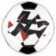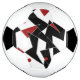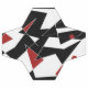 Varias formas geométricas de color blanco y rojo se reparten en un fondo negro, creando un contraste marcado. Algunas formas están interconectadas con líneas blancas finas y los puntos rojos agregan un toque de color a la composición.