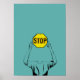 Este minimalista ilustracion muestra a una figura sin rostro con una camiseta simple, sosteniendo una señal amarillo brillante frente a donde estaría su cabeza. El fondo es de un azul claro y sólido, destacando la simplicidad y el enfoque en el signo. El signo de paro simboliza una pausa, un mensaje para detener, o una barrera conceptual, creando una narrativa visual directa y llamativa.