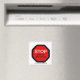 Una señal roja de paro con palabras que dicen que los platos para detener están limpios hace un lindo imán de lavavajillas.