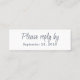 Moda, tarjetas de dirección de retorno modernas y sencillas con fecha RSVP en la parte posterior para ser usada como tarjeta de gabinete que acompaña tu invitación de boda. Sus nombres, dirección, mensaje y fecha RSVP en un guión elegante fuera de negro y tipografía moderna sobre un fondo blanco. Diseñado exclusivamente para usted por Happy Dolphin Studio!