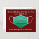 En el día 12 de Covid, mi verdadero amor me dijo... 2 días para que salgamos de la cuarentena. Un poco de humor de coronavirus esta temporada navideña para ayudarte a superar esta pandemia y el interminable estilo de vida de distanciamiento social. Tarjeta postal de Navidad de Covid en rojo con una mascarilla médica verde.