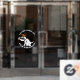 Calcomanía de ventana con el texto de la cita '¿UN DÍA CALUROSO? ¿UN PERRO SEDIENTO? AGÁRRATE - ¡TENEMOS AGUA FRESCA!'. Haz saber a los dueños de perros que tienes un tazón de agua fresca y fría para sus perros en tu acera, patio o dentro de tu establecimiento, en días soleados y calurosos.