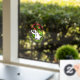 Calcomanía de ventana con texto de cita '¿UN DÍA CALUROSO? ¿UN PERRO SEDIENTO? AGÁRRATE - ¡TENEMOS AGUA FRESCA!'. Haz saber a los dueños de perros que tienes un tazón de agua fresca y fría para sus perros en tu acera, patio o dentro de tu establecimiento, en días soleados y calurosos.