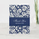 Tarjeta de agradecimiento para los padres de la novia o el novio en su día de boda. Elegante y sofisticado con un patrón clásico de damasco floral vintage en azul sofisticado y crema blanco, la forma perfecta de agradecer a sus padres por todo su apoyo en su día de boda.