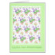 Una carta de cumpleaños muy bonito con el saludo de la portada en danés y un patrón de rosas rosas rosas, cremoso Naranja de pavo blanco y lavanda violeta sobre un fondo blanco con un borde verde pálido, de un diseño de acuarela pintado a mano por Judy Adamson. El interior se deja en blanco para tu propio mensaje.