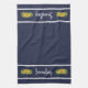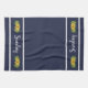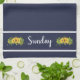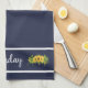 Girasoles en la toalla de cocina de domingo en fondo de los azules marinos.