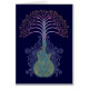 Una guitarra eléctrica/árbol híbrido con el Día de la Muerte del cráneo de azúcar nada más nada. Arte gráfico multicolor en camisetas, caramelos, cartas, regalos.