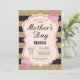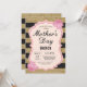 Invitación a Brunch de Día de la Madre. Flor rosa. Brillantina dorada. Moda de flor floral acuarela Rubor. Purpurina de oro y franjas negras. Color floral acuarela. Digital Imprimible. Para una mayor personalización, haga clic en el botón "Personalizar" y utilice nuestra herramienta de diseño para modificar esta plantilla.