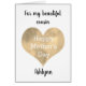 Una tarjeta personalizada del Día de la Madre que muestra un corazón dorado, que dice "Feliz Día de la Madre". El mensaje de la tarjeta interior dice "Espero que hoy y todos los días estén llenos de amor, risa y diversión. ¡Feliz Día de la Madre!" El mensaje del Día de la Madre se puede editar fácilmente. La parte trasera de la tarjeta del Día de la Madre de este primo tiene el mismo corazón junto con el año, que puedes editar fácilmente.