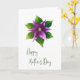 Celebra a Mamá con una elegancia atemporal. Esta tarjeta de felicitación de Día de la Madre presenta una delicada flor pintada a mano en acuarela en tonos suaves de púrpura y verde con un centro dorado para un aspecto refinado y moderno. Ideal para madres que aman los diseños florales, botánicos y minimalistas, esta tarjeta es perfecta para el Día de la Madre de un hijo, hija, alguien de cualquier género o toda la familia.