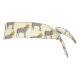 Esta banda de cabeza impresionante presenta un burro marrón pálido con una manga y cola marrones oscuros. El burro está listo para celebrar el Día de los Muertos, el Día de los Muertos. El burro lleva un sombrero mexicano cubierto de estrellas rojas y verdes, zanahorias, remolinos coloridos, cerezas y chiles rojos y verdes. Hay una flor con pétalos naranjas y un centro amarillo en medio del gorra, llamado Tithonia, o girasol mexicano.