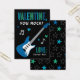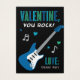 ¡San Valentín, tu rocas", tarjetas El día de San Valentín diseñadas para niños geniales a los que les gusta rodar y rodar! La tarjeta plana cuenta con un patrón de guitarra eléctrica azul y estrellas con acentos para notas de corazón y música y texto de nombre personalizado en color de fondo negro.
