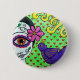 Este botón tiene una imagen de una de mis pinturas llamada "Reina". Mi inspiración para todo mi trabajo viene de mi país (México) y esto en particular se inspira en la celebración del Día de Muertos. En esta celebración recordamos a nuestros seres queridos con felicidad y respeto.