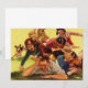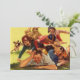 Ilustración vintage de una imagen familiar que muestra a un padre jugando fútbol con sus hijos y su leal perro. Al papá lo están derribando sus hijos. ¡Feliz Día del Padre!