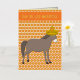 Esta increíble tarjeta de Relieve metalizado Día de los Muertos presenta un burro marrón pálido con una manga y cola marrones oscuros. El burro está listo para celebrar el Día de los Muertos, el Día de los Muertos. El burro lleva un sombrero mexicano cubierto de estrellas rojas y verdes, zanahorias, remolinos coloridos, cerezas y chiles rojos y verdes. Hay una flor con pétalos naranjas y un centro amarillo en medio del gorra, llamado Tithonia, o girasol mexicano. Hay un texto personalizado dentro para que puedas personalizar esta tarjeta. El texto personalizado en el frente está en un hermoso Relieve metalizado de oro.