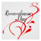 Este elegante poster presenta un rico fondo rojo con un diseño artístico y adornos rojos que flotan con gracia. En negrita, la escritura cursiva negra, 'Día de Recuerdo' ocupa el centro del escenario. Es un homenaje conmovedor y elegante para honrar a los que se sacrificaron por nuestra libertad.