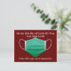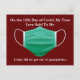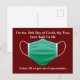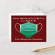 En el día 12 de Covid, mi verdadero amor me dijo...2 días para que salgamos de la cuarentena. Un poco de humor de coronavirus esta temporada navideña para ayudarte a superar esta pandemia y el interminable estilo de vida de distanciamiento social. Tarjeta postal de Navidad Covid en rojo con una mascarilla médica verde.