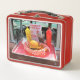 Esta caja de almuerzo con bandeja de comida, hamburguesa, patatas fritas y refrescos pegados a la ventana de un famoso modelo de autos de 1957 y un antiguo vehículo modelo en un espectáculo de autos es perfecta para todo aquel que ame los autos clásicos que busca el aspecto retro y es ideal para asistir a espectáculos de autos y cruceros junto con otros lugares. Este artículo también es ideal para regalar durante todo el año.