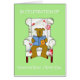 Un lindo perro marrón sentado en una silla cubierta de material de chintz. Él está leyendo un libro sobre un gato jengibre. Las palabras 'En celebración del Día Nacional de Leer un Libro' acompañan la imagen.