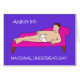 Un hombre personalizado con calzoncillos blancos, reclinándose en una tumbona, con un fondo morado.