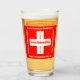 Celebrar el Día Nacional Suizo con este atrevido y brillante vidrio de una pinta el 1 de agosto, que presenta la cruz blanca de la bandera nacional suiza y el "Feliz Día Nacional Suizo" en los cuatro idiomas oficiales de Suiza. El reverso muestra un diseño idéntico. Diseño © W.H. Sim. Ver más en zazzle.com/expressionsoccasions