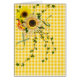 Un ramo de girasol con una mujer que cuelga sobre un fondo de gingham.