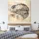 Un antiguo diseño de arte de ilustracion cerebral con un diagrama cerebral ilustrado clásico.