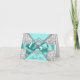 Tarjeta de agradecimiento azul turquesa con hermoso fondo de remolino azul turquesa y gris plateado y elegante arco de diamante azul turquesa. Agregue su texto en el estilo de fuente y color de su elección, o elimine el texto.