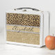 Cree a su OwnThis que el diseño se hace con puntos marrones del leopardo y un purpurina del oro que chispee en la parte inferior. El centro se deja para la personalización/personaliza rodeado con los diamantes de imitación blancos del diamante. (Foto impresa)