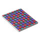 Este impresionante bloc de notas tiene un patrón abstracto con filas de diamantes rojos, azul claro y azul oscuro. Cada fila está separada por una fila de diamantes negros. Cada uno de los diamantes negros tiene un agujero en el medio. La parte superior izquierda de cada diamante parece brillar. Aquí está la parte divertida, puedes llenar ese hoyo con una selección de más de 200 colores para hacer un diseño único. Aquí los agujeros han sido rellenados con un penetrante color rosa claro como ejemplo. Para seleccionar su color y ver el efecto que tiene sobre el diseño, simplemente haga clic en el botón "personalizar", vaya a la sección de colores y haga clic en el fondo y seleccione el color que desee colocar en el diseño. Puedes probar tantos colores como quieras hasta que encuentres el que funciona para ti.