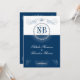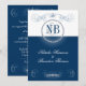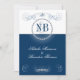 Invitaciones de bodas de marina y plata con decoración de diamantes de imitación y elementos de diseño caligráfico. Elegantes colores azules y plateados con muchos detalles. Diseño de 2 lados, personalizar cada campo con los detalles de su boda. Hay RSVP coincidente, Gracias, Guardar la fecha, etc. Estas invitaciones azules y plateadas son parte de mi juego de bodas Blue y Silver.