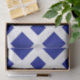Un patrón audaz y geométrico de diamantes de gran tamaño y de pequeña marina sobre un fondo blanco. El blanco forma un entramado que separa las formas de diamante azul oscuro. Imagen creada digitalmente. Copyright ©Claire E. Skinner, todos los derechos reservados.