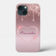 Wow! Justo a tiempo para la temporada navideña 2021...Los casos de iPhone están disponibles aquí en Zazzle. Este funda es para la Mini Versión y el funda tiene un fondo rosado brillante con caídas purpurinas cayendo y con un corazón rombo rosado alrededor del centro. Podrás personalizar el texto dentro del corazón con el nombre de la persona para la que está. ¡Espero que disfrutes de tu nuevo funda por tu nuevo teléfono!
